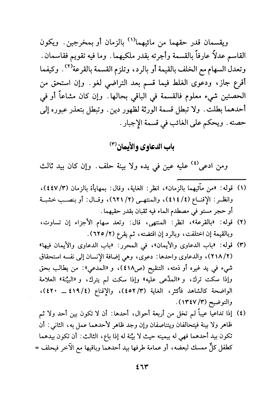 (¬2) قوله: "بالقرعة"، انظر: المنتهى، قال: وتعد سهام الأجزاء إن تساوت، وبالقيمة إن اختلفت، وبالرد إن اقتضته، ثم يقرع (2/ 625).