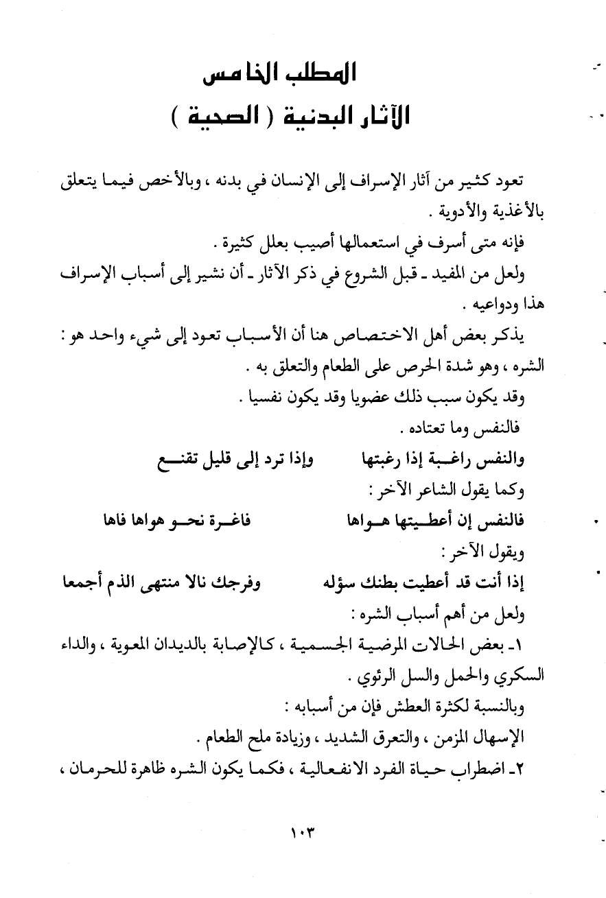 المطلب الخامس: الآثار البدنية (الصحية) تعود كثير من آثار الإسراف إلى الإنسان في بدنه، وبالأخص فيما يتعلق بالأغذية والأدوية.