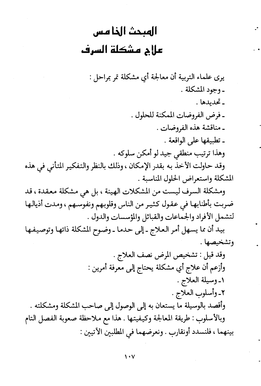علاج مشكلة السرف يرى علماء التربية أن معالجة أي مشكلة تمر بمراحل: