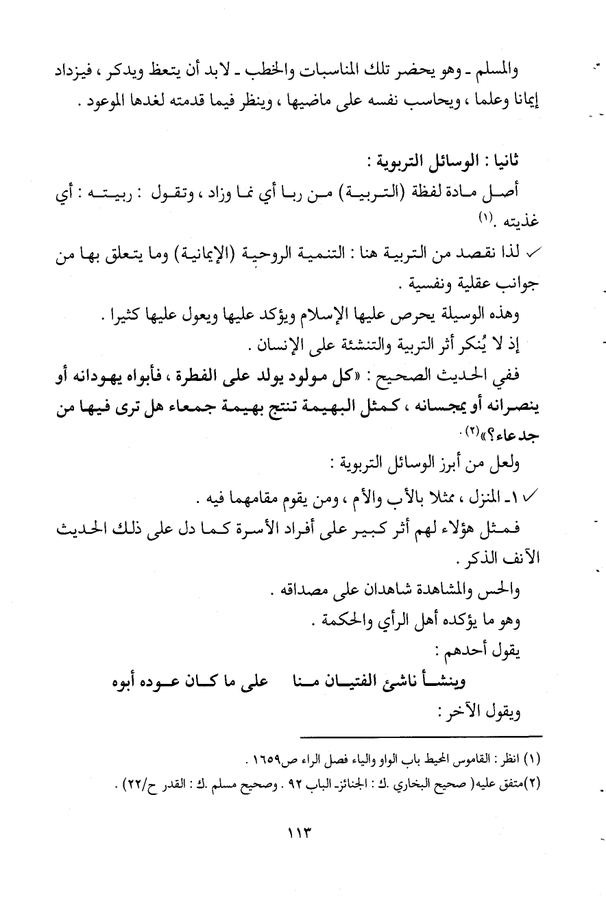لذا نقصد من التربية هنا: التنمية الروحية (الإيمانية) وما يتعلق بها من جوانب عقلية ونفسية.