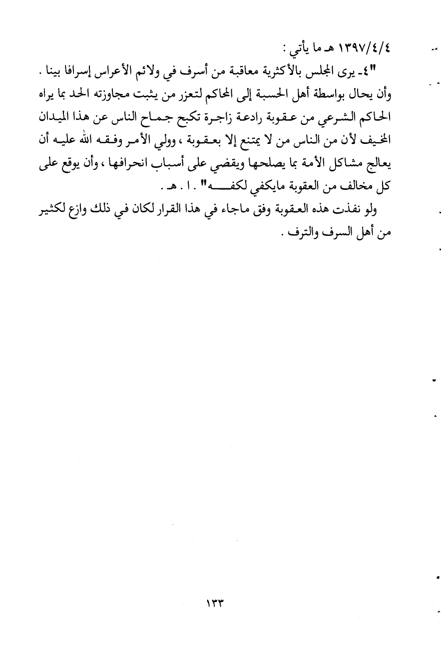 ولو نفذت هذه العقوبة وفق ما جاء في هذا القرار لكان في ذلك وازع لكثير من أهل السرف والترف.