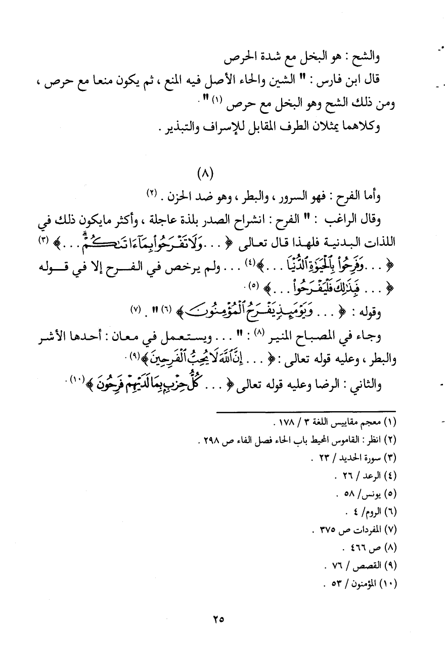 (8) وأما الفرح: فهو السرور والبطر، وهو ضد الحزن (¬2) .