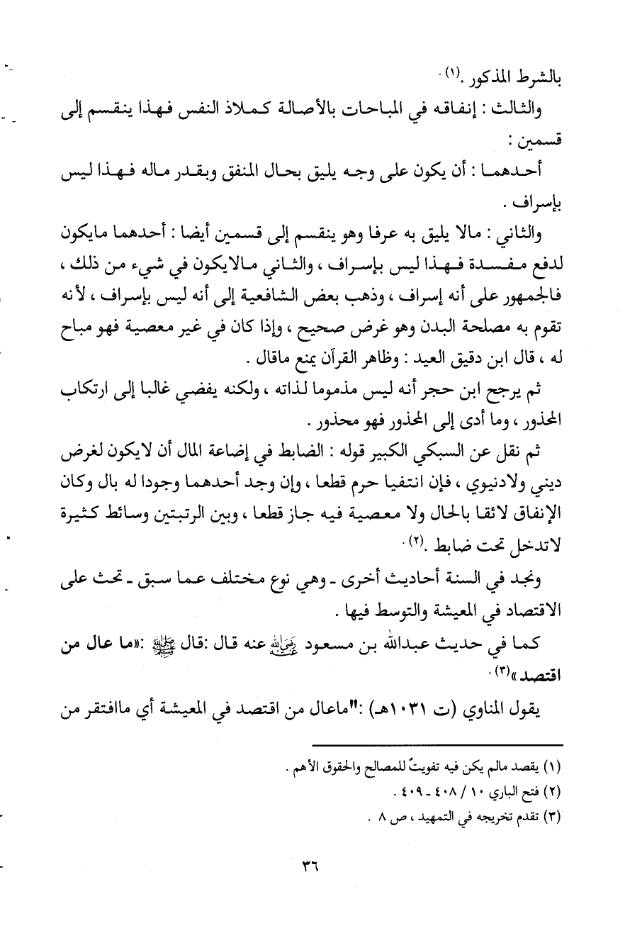والثالث: إنفاقه في المباحات بالأصالة كملاذ النفس، فهذا ينقسم إلى قسمين: