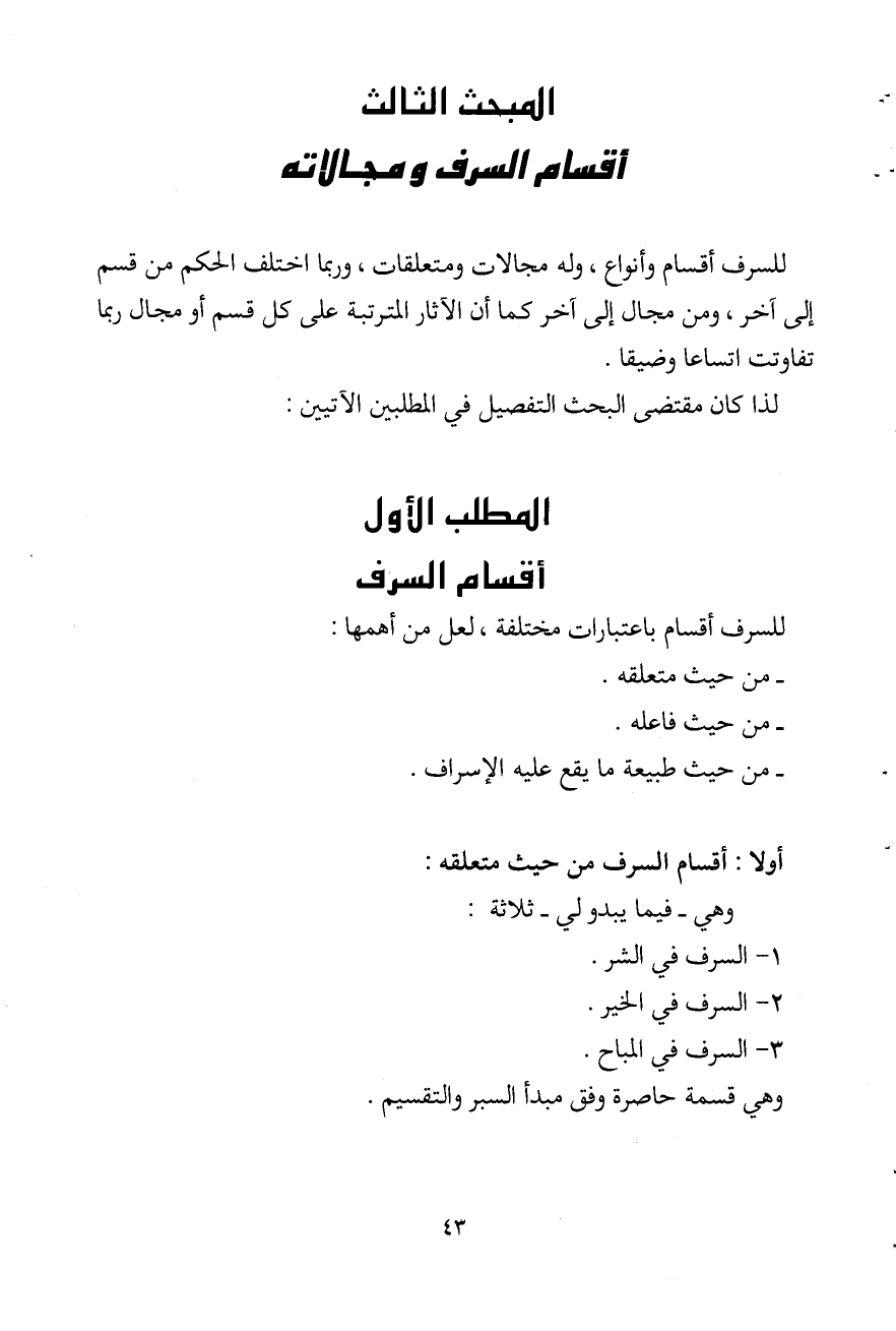 أولا: أقسام السرف من حيث متعلقه: وهي - فيما يبدو لي - ثلاثة: