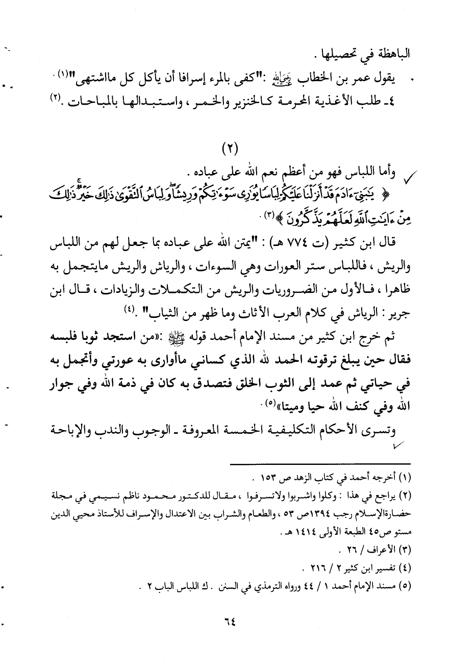 (¬2) يراجع في هذا: وكلوا واشربوا ولا تسرفوا، مقال للدكتور محمود ناظم نسيمي في مجلة حضارة الإسلام رجب 1394 ص53، والطعام والشراب بين الاعتدال والإسراف للأستاذ محيي الدين مستو ص45 الطبعة الأولى 1414هـ.