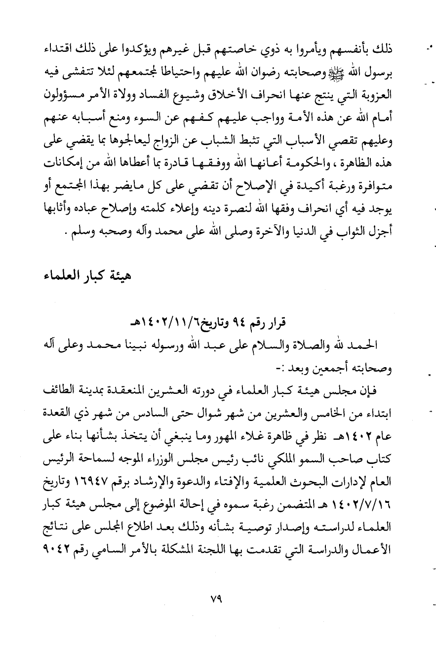قرار رقم 94 وتاريخ 6 / 11 / 1402 هـ الحمد لله والصلاة والسلام على عبد الله ورسوله نبينا محمد وعلى آله وصحابته أجمعين، وبعد: -