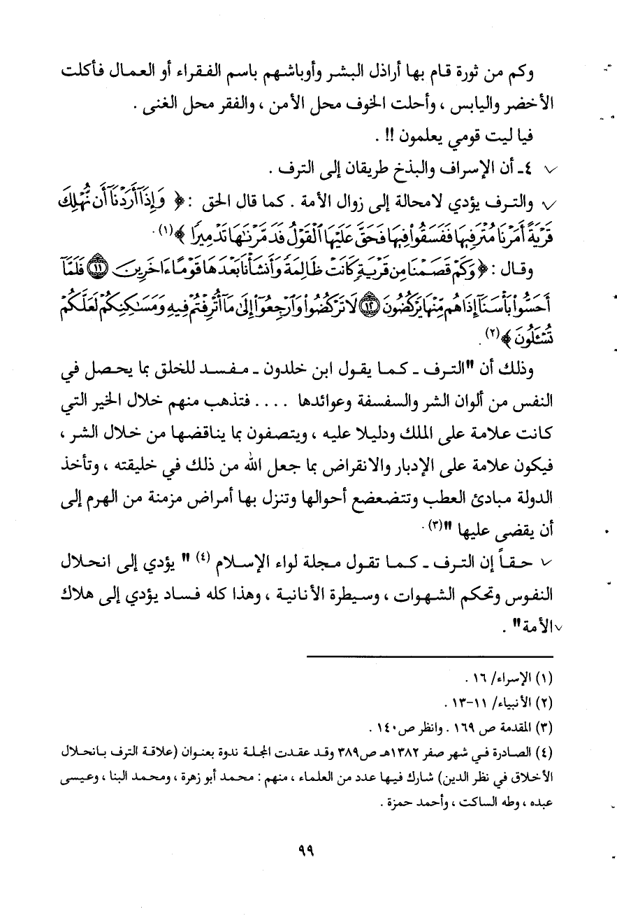 (¬4) الصادرة في شهر صفر 1382 هـ ص 389 وقد عقدت المجلة ندوة بعنوان (علاقة الترف بانحلال الأخلاق في نظر الدين) شارك فيها عدد من العلماء، منهم: محمد أبو زهرة، ومحمد البنا، وعيسى عبده، وطه الساكت، وأحمد حمزة.