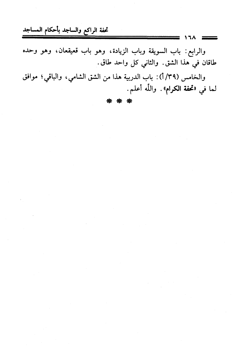 والخامس (39/ أ): باب الدربية هذا من الشق الشامي، والباقي؛ موافق لما في "تحفة الكرام". واللَّه أعلم.