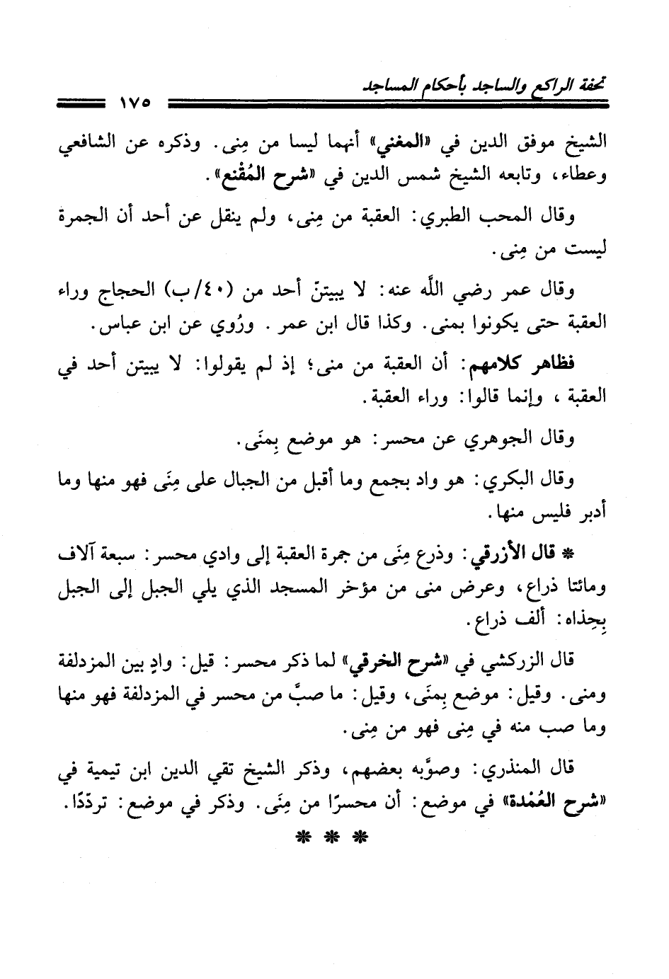 قال المنذري: وصوَّبه بعضهم، وذكر الشيخ تقي الدين ابن تيمية في "شرح العُمْدة" في موضع: أن محسرًا من مِنَى. وذكر في موضع: تردّدًا.