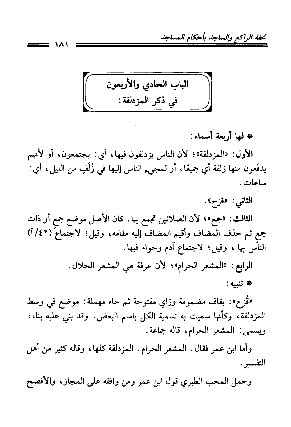 الباب الحادي والأربعون في ذكر المزدلفة:
