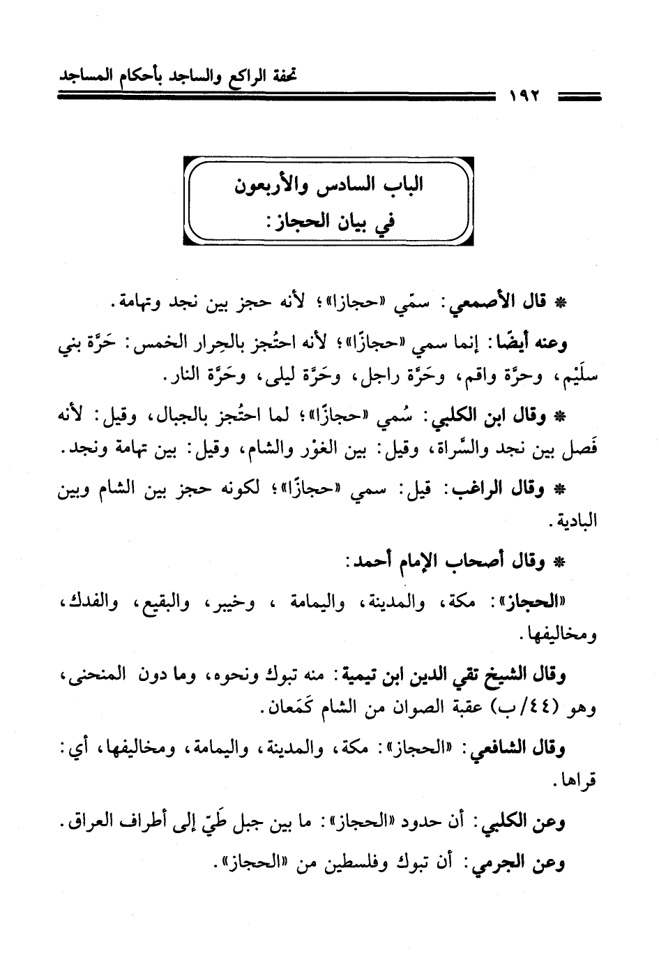 وعن الجرمي: أن تبوك وفلسطين من "الحجاز".