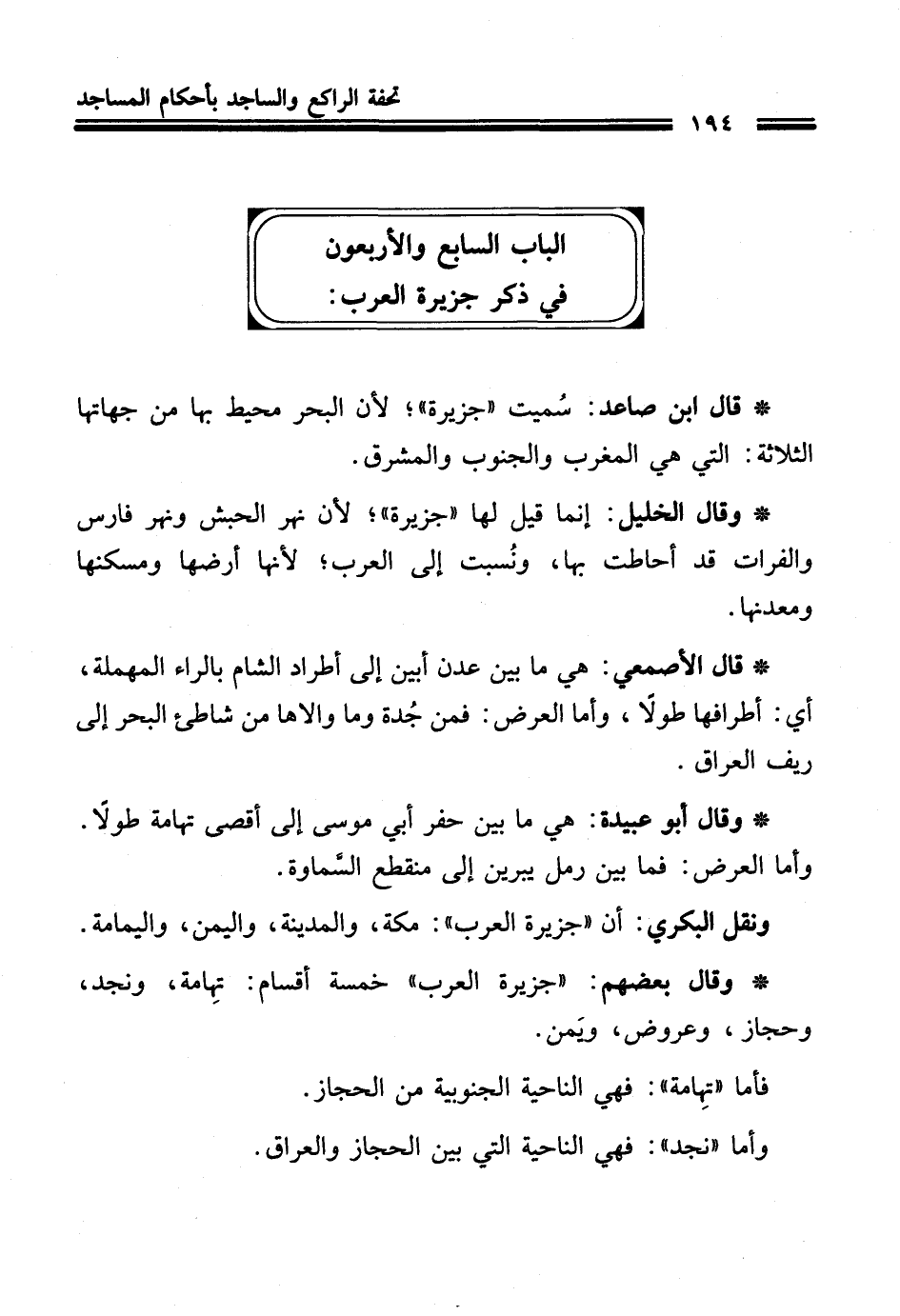 الباب السابع والأربعون في ذكر جزيرة العرب: