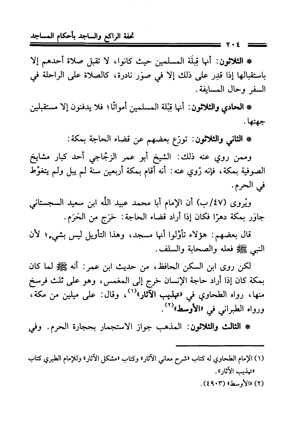 * الثالث والثلاثون: المذهب جواز الاستجمار بحجارة الحرم. وفي