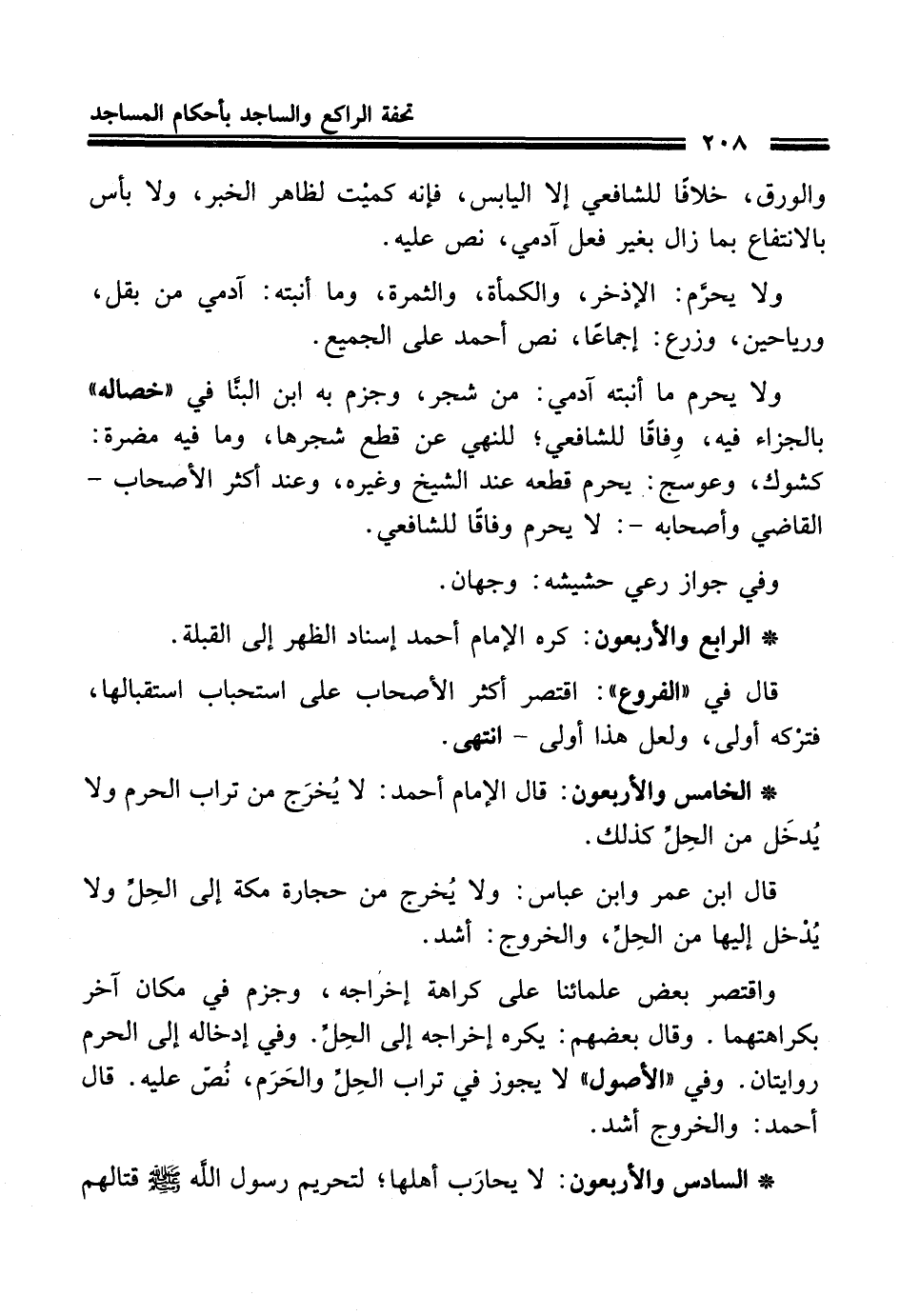 * الرابع والأربعون: كره الإمام أحمد إسناد الظهر إلى القبلة.