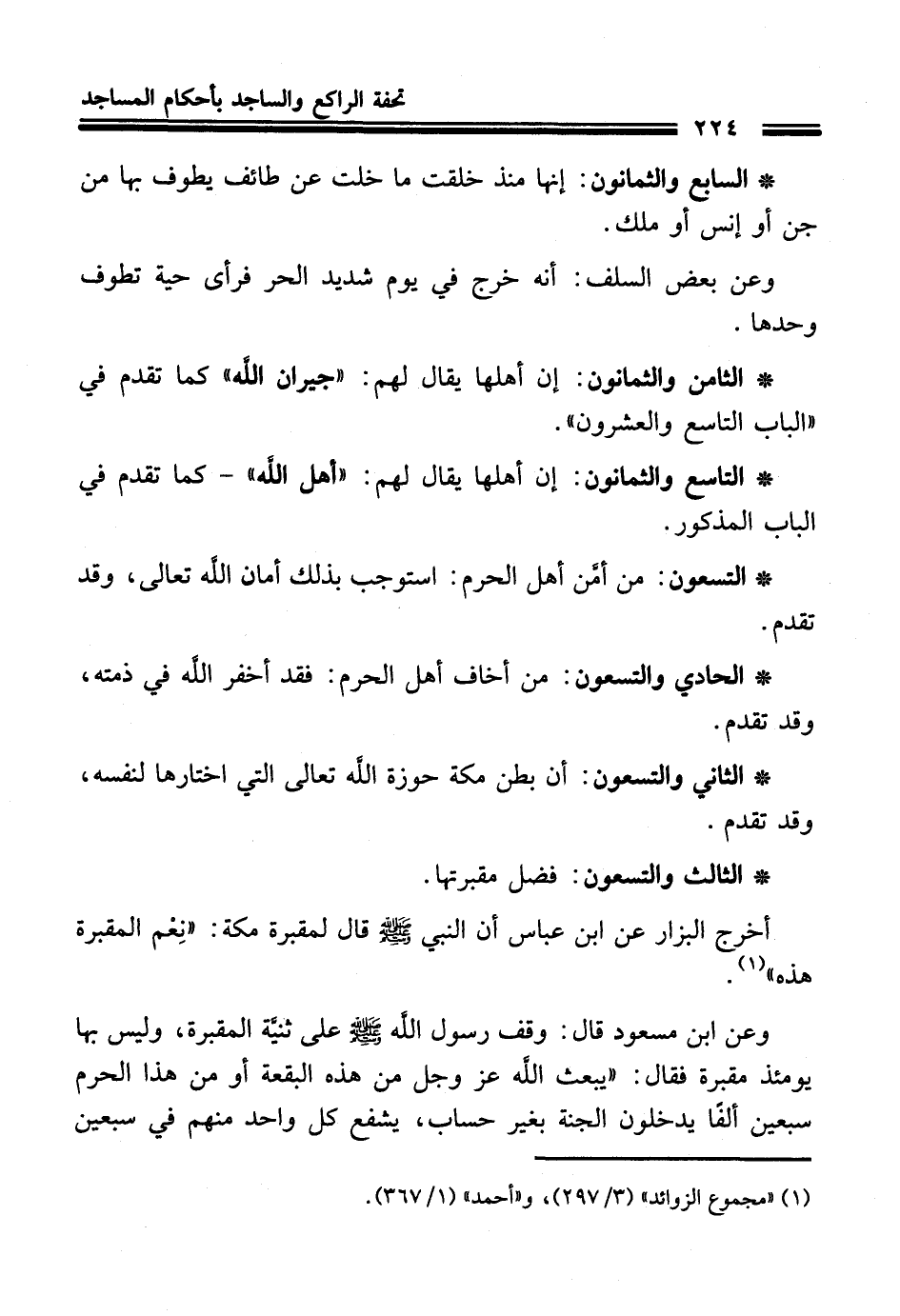 * الثامن والثمانون: إن أهلها يقال لهم: "جيران الله" كما تقدم في "الباب التاسع والعشرون".