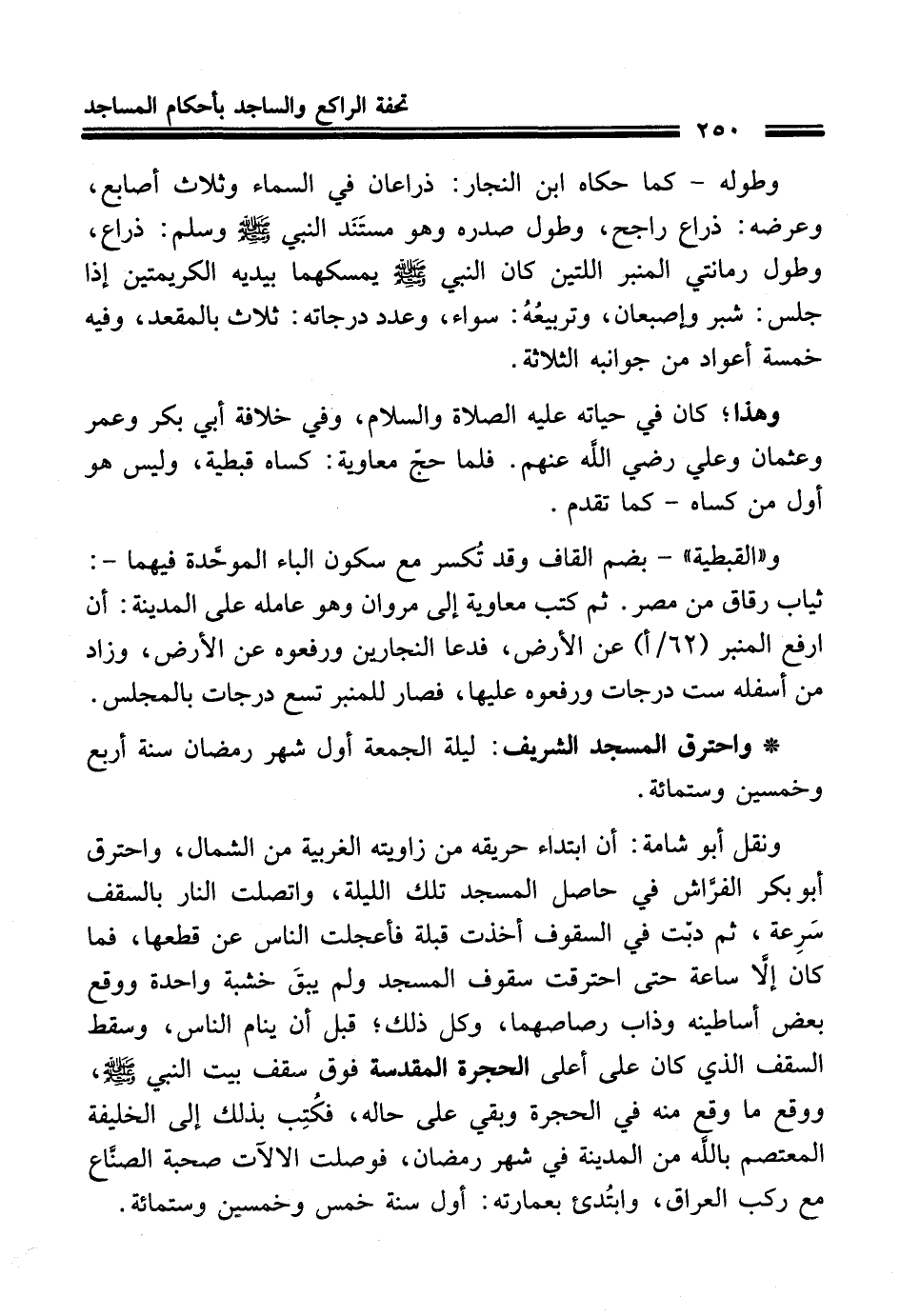 * واحترق المسجد الشريف: ليلة الجمعة أول شهر رمضان سنة أربع وخمسين وستمائة.