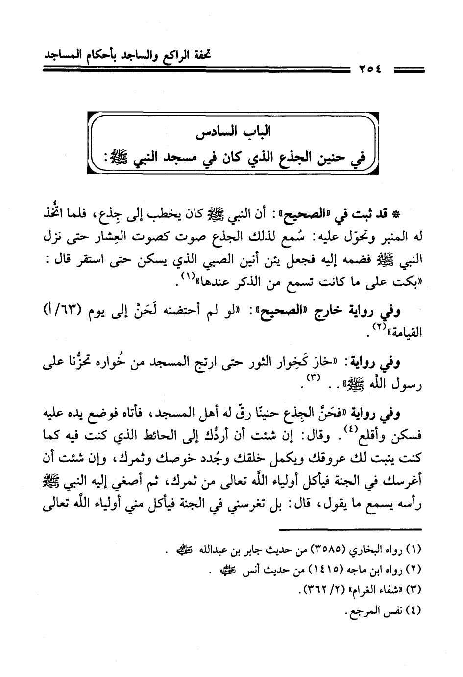 الباب السادس في حنين الجذع الَّذي كان في مسجد النبي - صلى الله عليه وسلم -: