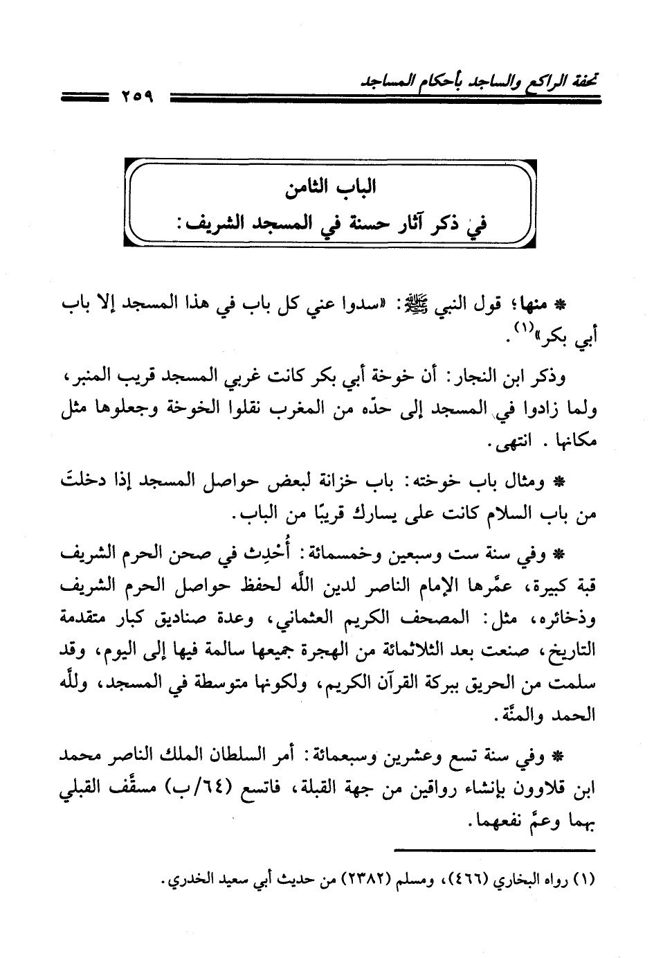 الباب الثامن في ذكر آثار حسنة في المسجد الشريف: