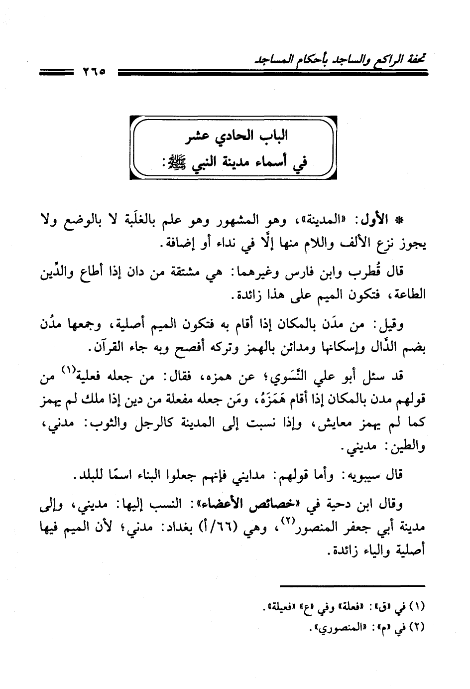 الباب الحادي عشر فى أسماء مدينة النبي - صلى الله عليه وسلم -: