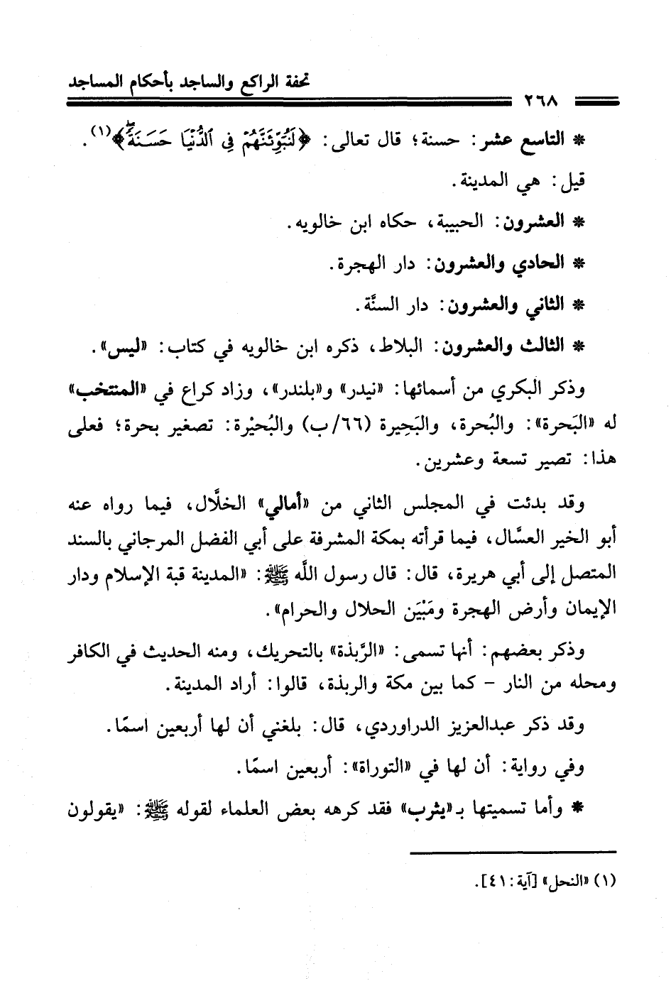 * الحادي والعشرون: دار الهجرة.
