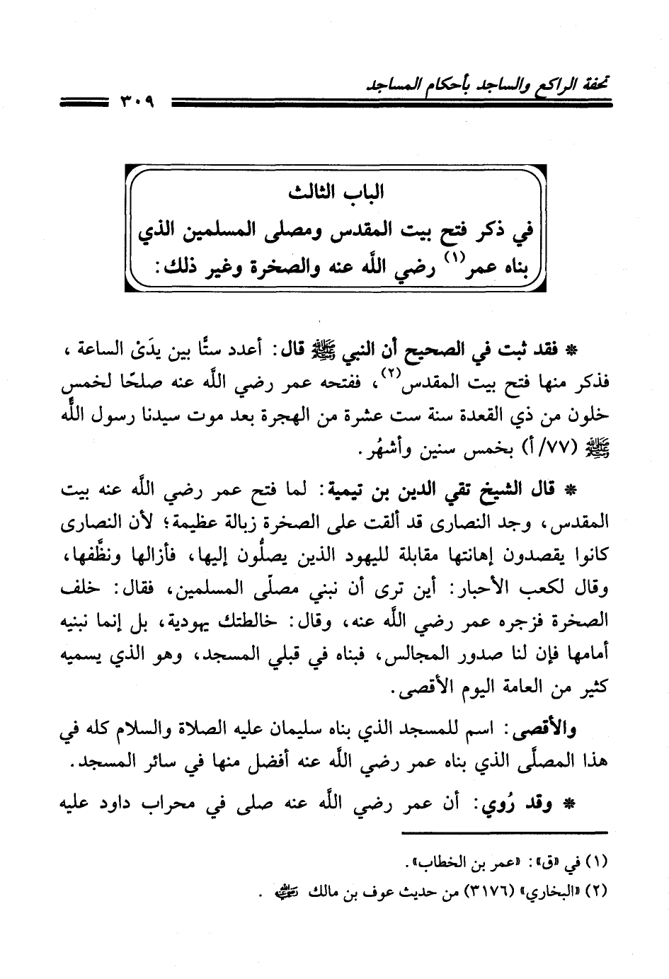 الباب الثالث في ذكر فتح بيت المقدس ومصلى المسلمين الذي بناه عمر (¬1) رضي الله عنه والصخرة وغير ذلك: