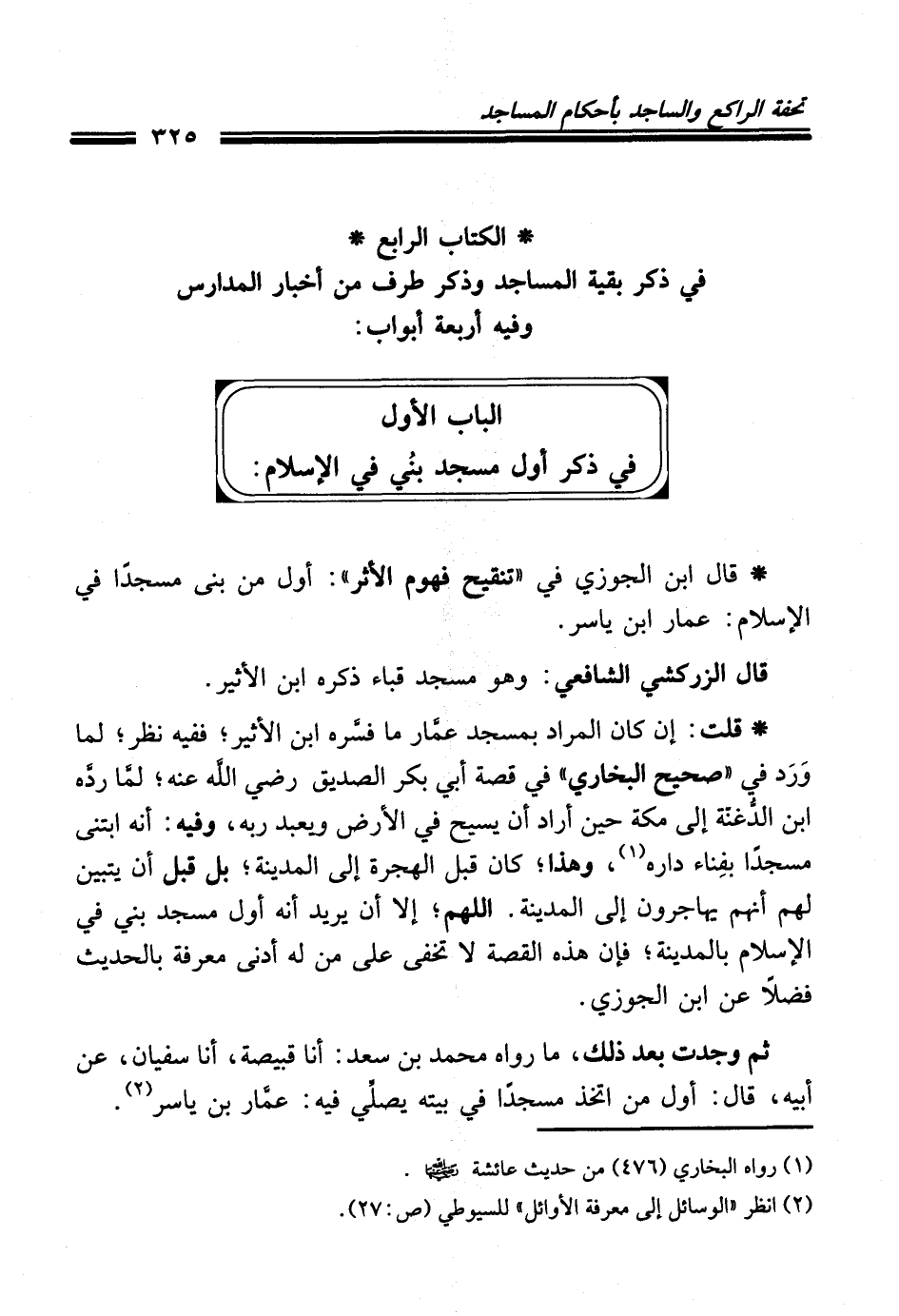 الباب الأول في ذكر أول مسجد بنُي في الإِسلام: