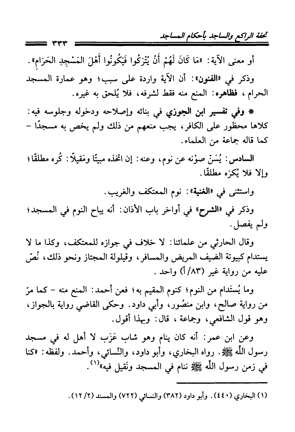 (¬1) البخاري (440). وأبو داود (382) والنسائي (722) والمسند (2/ 12).