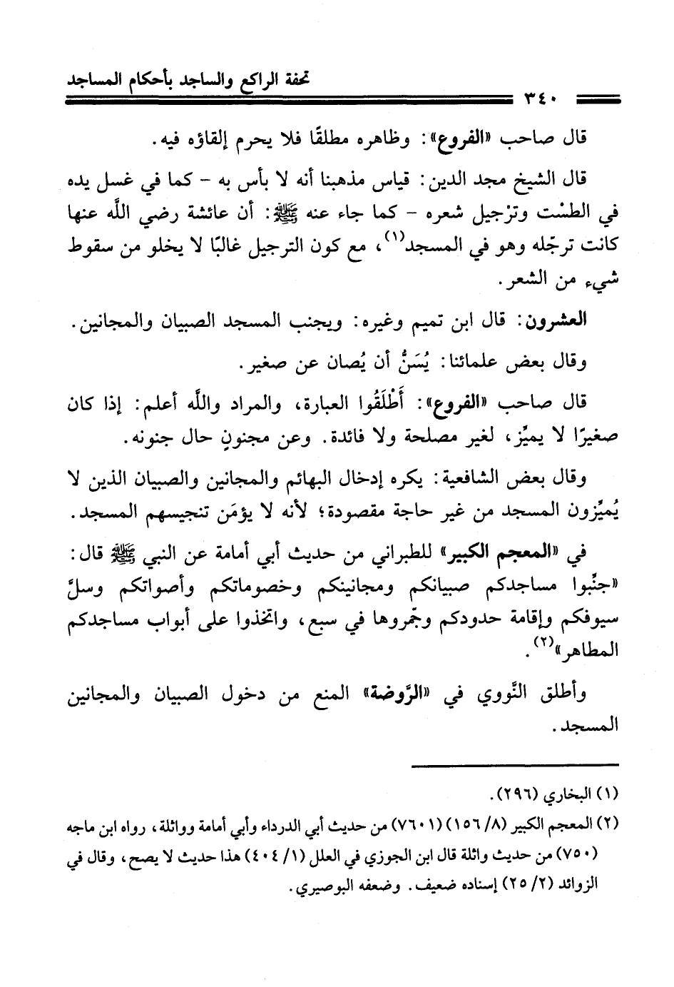 العشرون: قال ابن تميم وغيره: ويجنب المسجد الصبيان والمجانين.