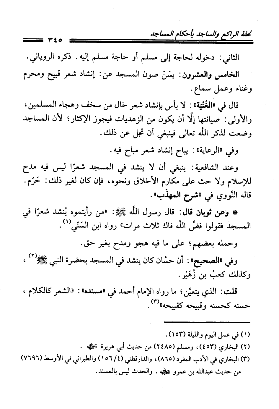الخامس والعشرون: يسَنَّ صون المسجد عن: إنشاد شعر قبيح ومحرم وغناء وعمل سماع.