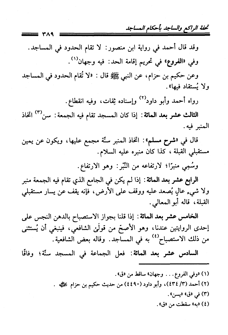 وعن حكيم بن حزام، عن النبي - صلى الله عليه وسلم - قال: "لا تُقام الحدود في المساجد ولا يُستقاد فيها".