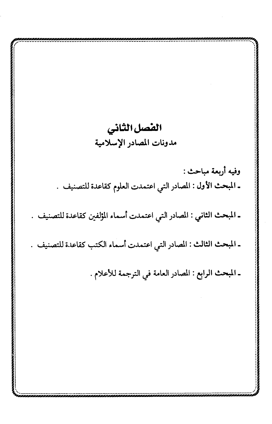 - الفصل الثاني: مدونات المصادر الإسلامية وفيه أربعة مباحث: