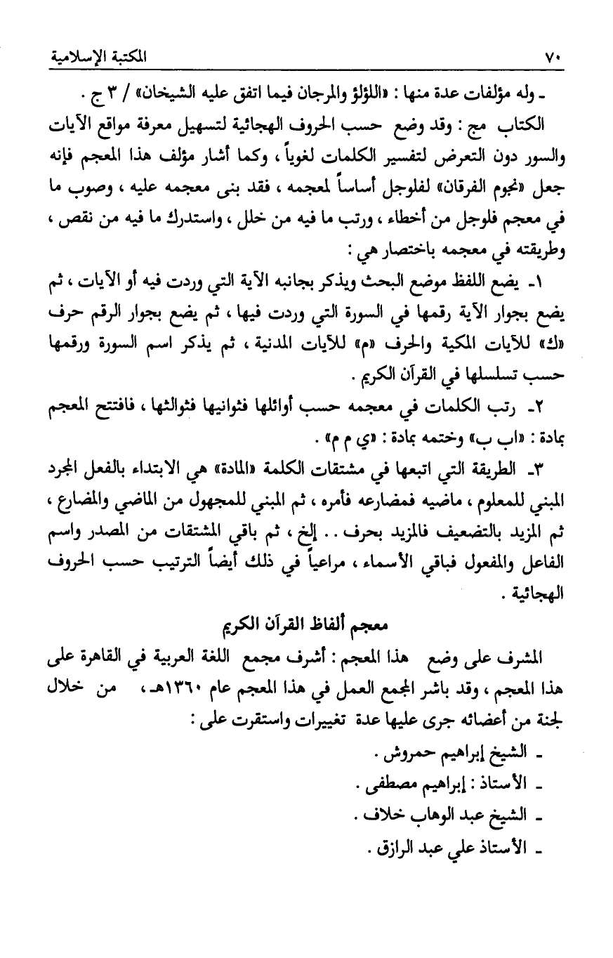 وقد ترجم لعدد من المستشرقين الذين خلفوا آثارا باللغة العربية سواء تأليفا بها أو نشرا لبعض مخطوطاتها مثل: فلوجل ومرجليوث، أو الذين يظهر لهم أثر بها مثل: آرنلود توماس.