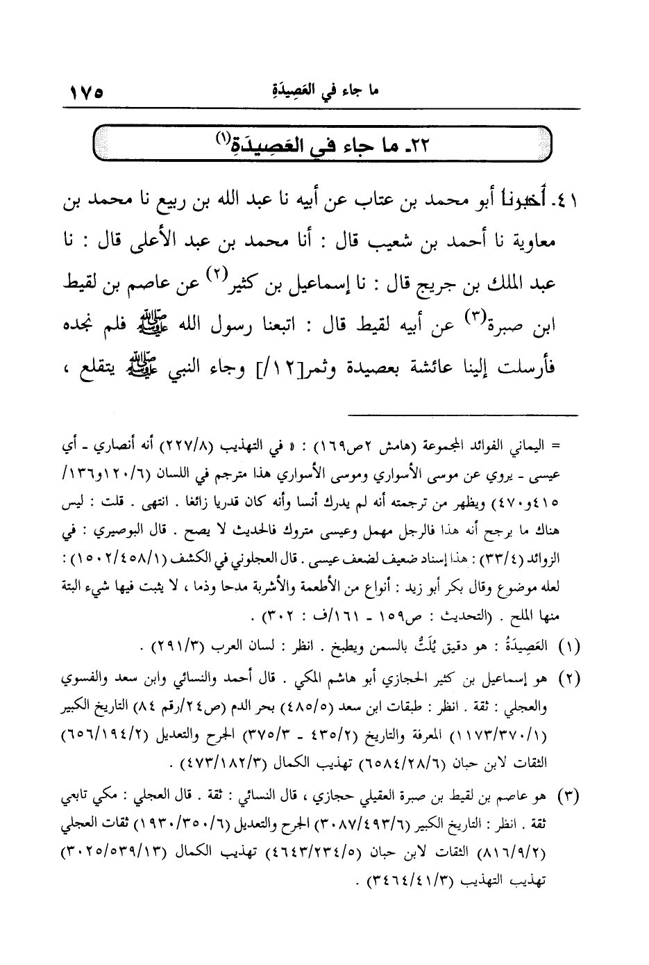 [22] مَا جَاءَ فِي العَصِيدَةِ