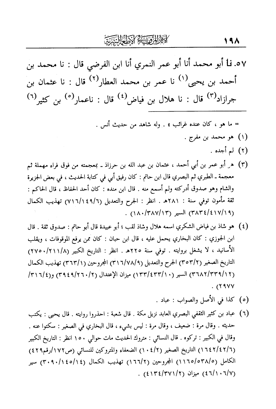 57- نا أَبُو مُحَمَّدٍ أنا أَبُو عُمَرَ النَّمَرِيُّ أنا ابْنُ الْفَرَضِيِّ قَالَ: نا مُحَمَّدُ بْنُ أَحْمَدَ بْنِ يَحْيَى نا عُمَرُ بْنُ مُحَمَّدٍ الْعَطَّارُ قَالَ: نا عُثْمَانُ بن جرازاد قَالَ: نا هِلالُ بْنُ فَيَّاضٍ قَالَ: نا عَمَّارُ بْنُ كَثِيرٍ -[199]- عَنْ هِشَامِ بْنِ عُرْوَةَ عَنْ أَبِيهِ: عَنْ عَائِشَةَ قَالَتْ: كَانَ أَحَبَّ الْفَاكِهَةِ إِلَى رَسُولِ اللَّهِ صَلَّى اللَّهُ عَلَيْهِ وَسَلَّمَ الرُّطَبُ وَالْبِطِّيخُ وَكَانَ يَأْكُلُ التَّمْرَ بِالْخِرْبِزِ وَكَانَ يُعْجِبُهُ الدُّبَّاءُ.