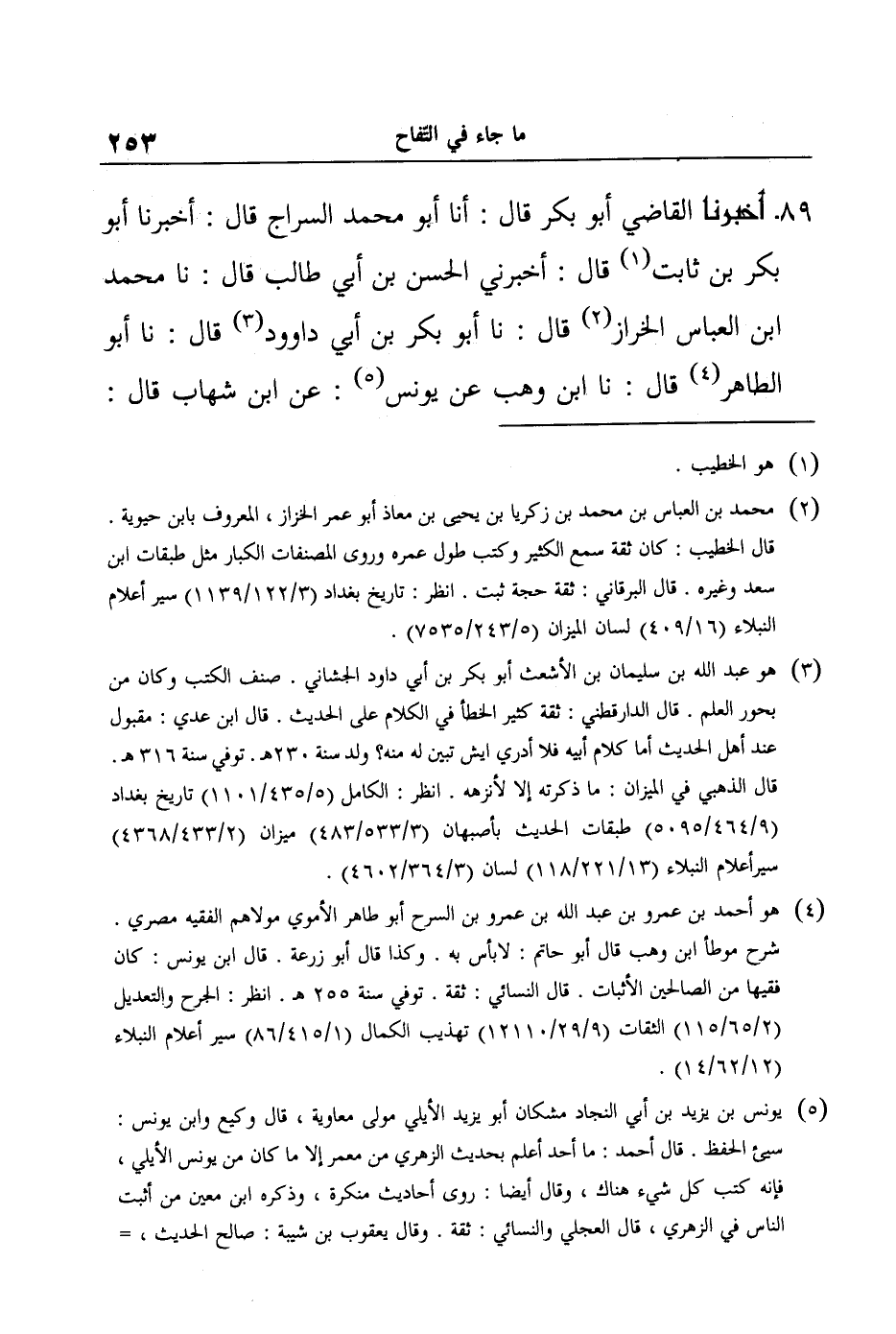89- أَخْبَرَنَا الْقَاضِي أَبُو بَكْرٍ قَالَ: أنا أبو محمد السراج قَالَ: أنا أَبُو بَكْرِ بْنُ ثَابِتٍ قَالَ: أَخْبَرَنِي الْحَسَنُ بْنُ أَبِي طَالِبٍ قَالَ: نا مُحَمَّدُ بْنُ الْعَبَّاسِ الْخَرَّازُ قَالَ: نا أبو بكر بن أبي داوود قال: نا أبو طاهر قَالَ: نا ابْنُ وَهْبٍ عَنْ يُونُسَ: عَنِ ابْنِ شِهَابٍ قَالَ -[254]-: "التُّفَّاحُ يُورِثُ النِّسْيَانَ".