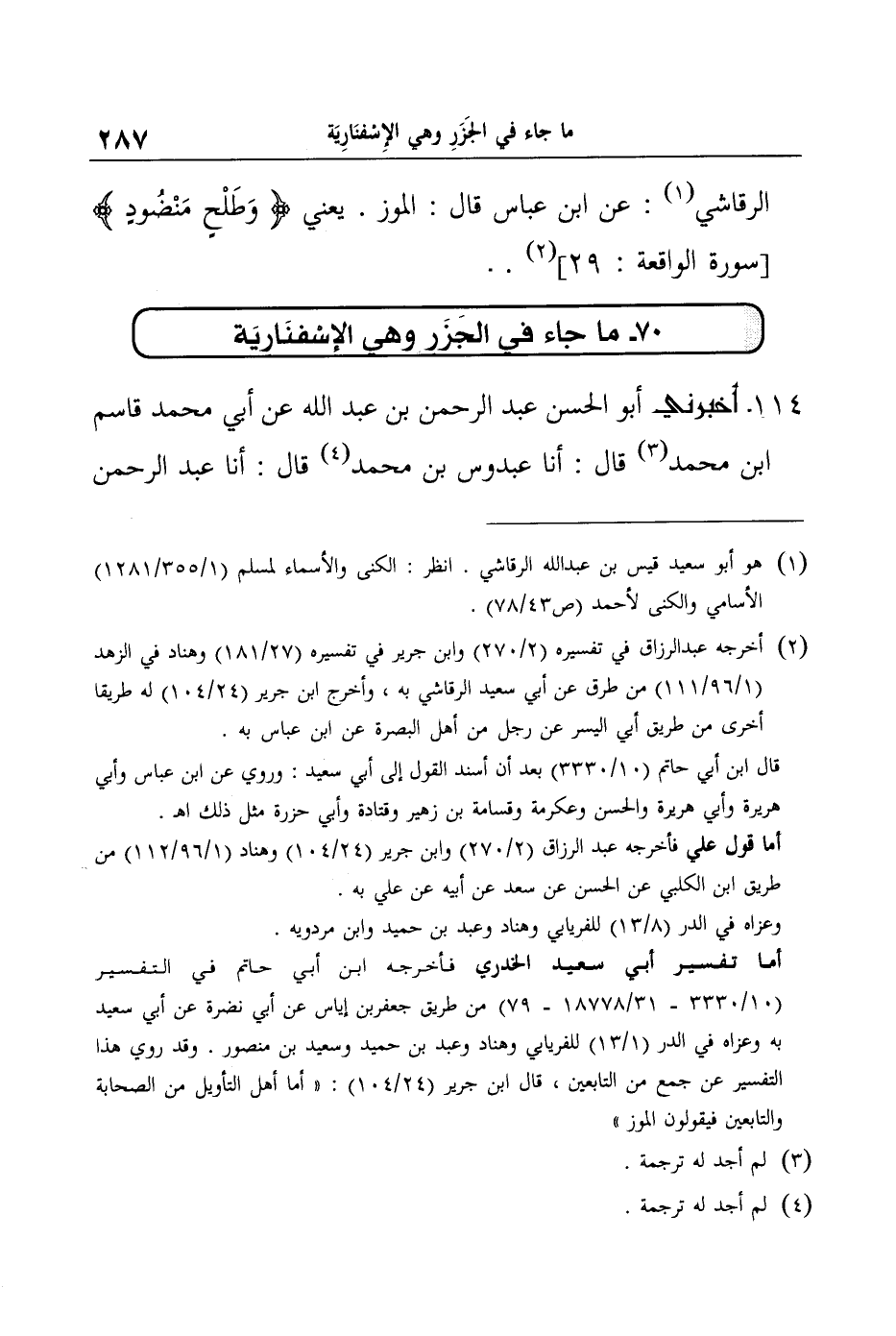 [70] مَا جَاءَ فِي الجَزَر وَهِيَ الإسْفنَارِيَة