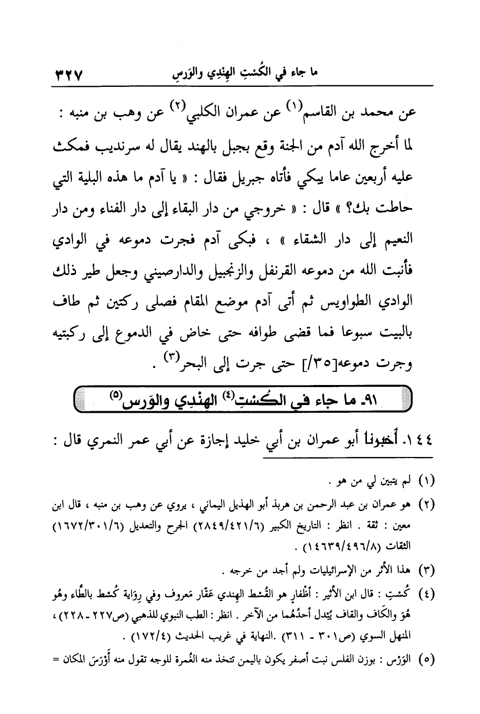 [91] مَا جَاءَ فِي الكُسْتِ الهِنْدِي والوَرس