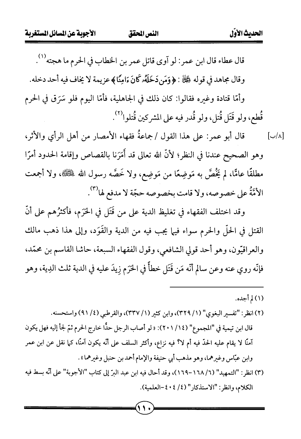 (¬3) انظر: "التمهيد" (6/ 168 - 169)، وقد أحال فيه ابن عبد البرّ إلى كتاب "الأجوبة" على أنّه بسط فيه الكلام، وانظر: "الاستذكار" (4/ 404 - العلمية).