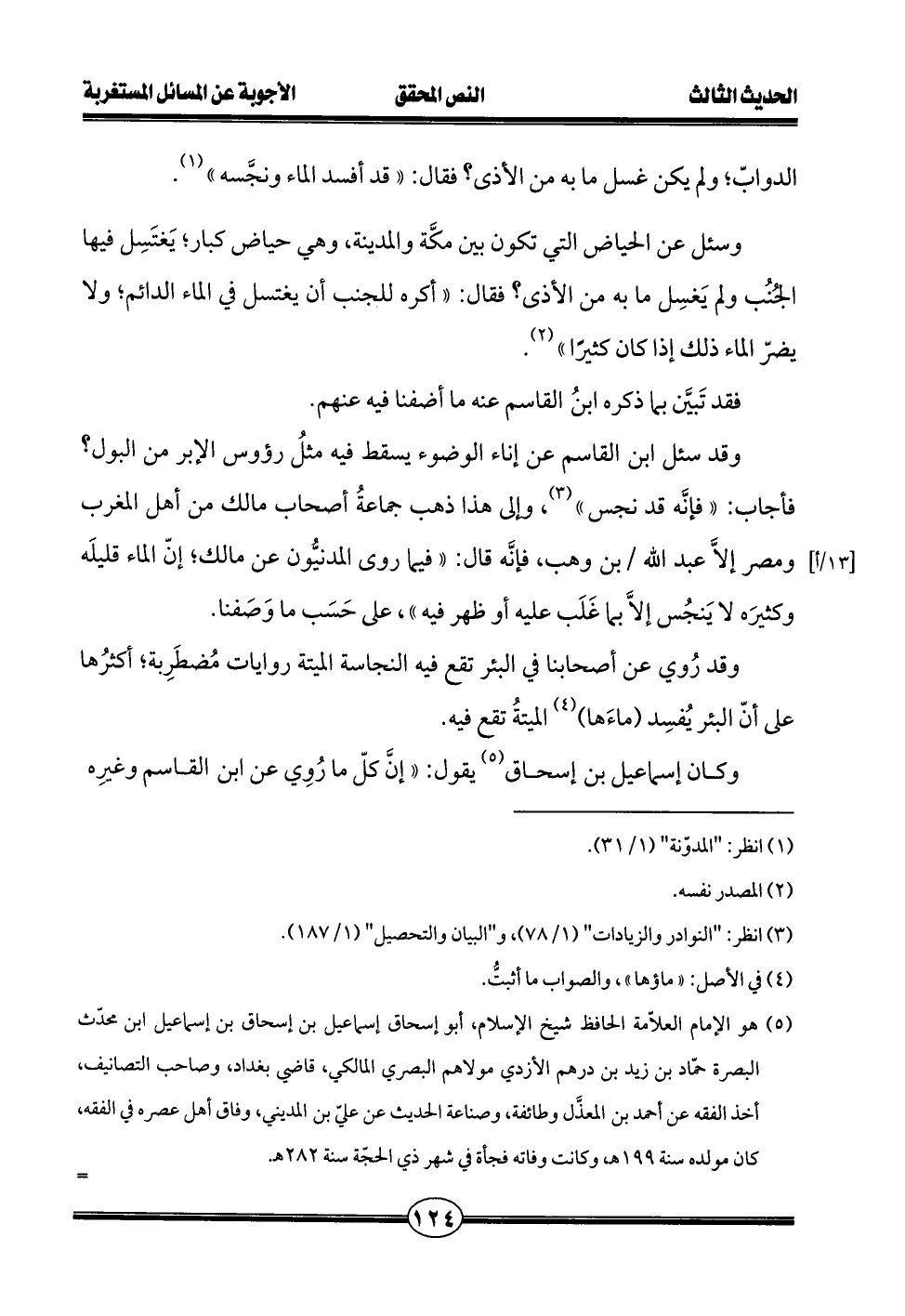 (¬3) انظر: "النوادر والزيادات" (1/ 78)، و"البيان والتحصيل" (1/ 187).