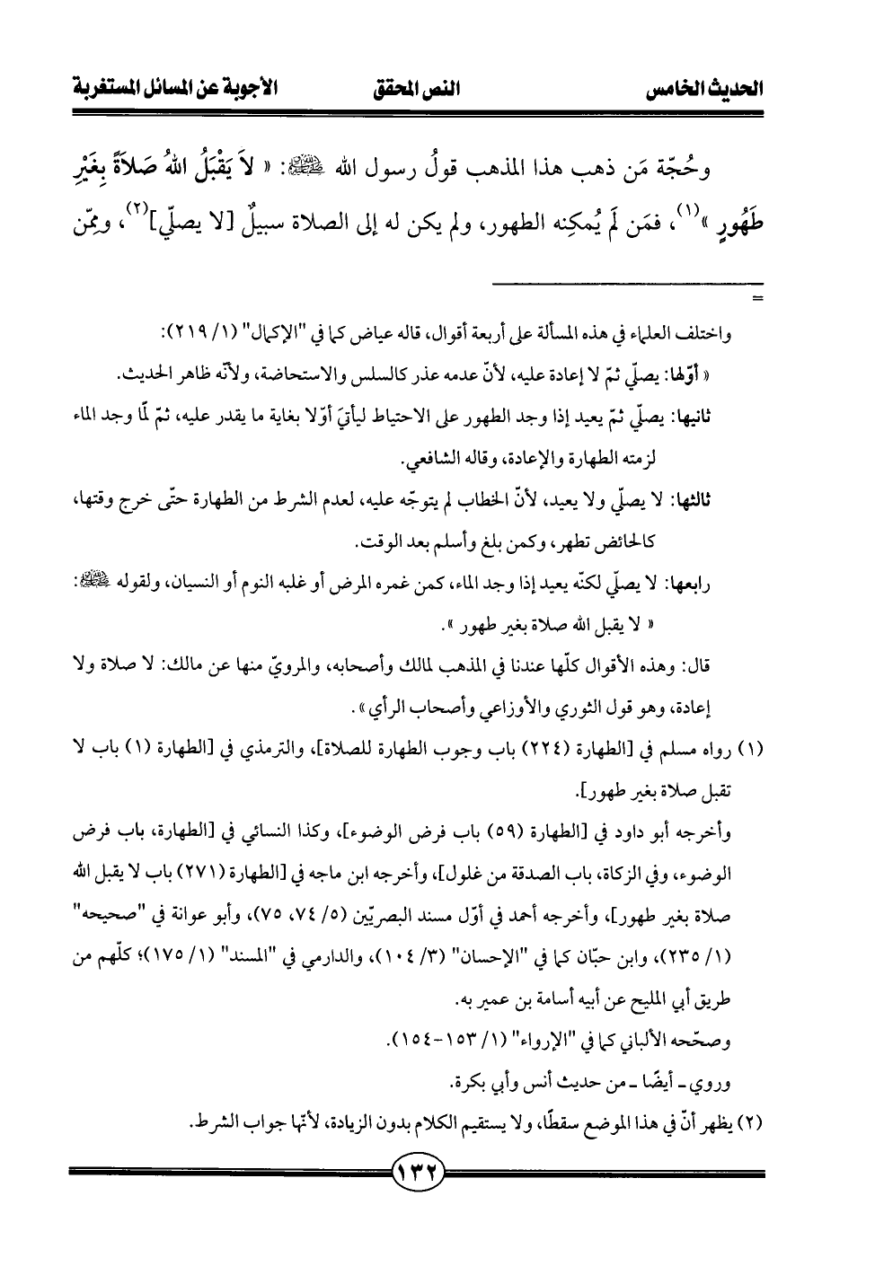 (¬1) رواه مسلم في [الطهارة (224) باب وجوب الطهارة للصلاة]، والترمذي في [الطهارة (1) باب لا تقبل صلاة بغير طهور].
