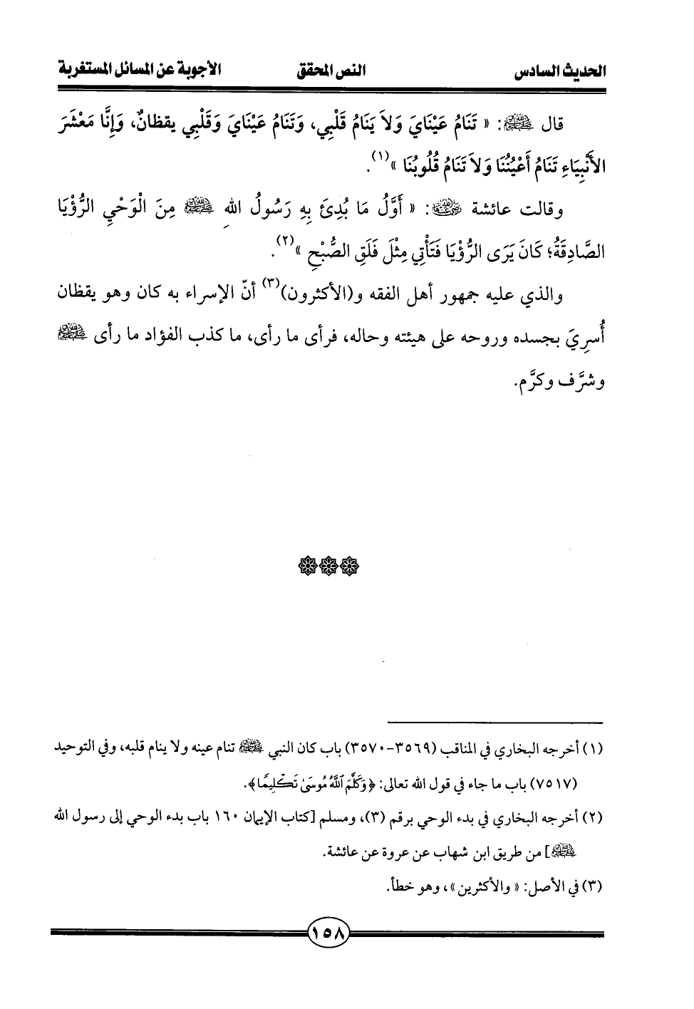 (¬1) أخرجه البخاري في المناقب (3569 - 3570) باب كان النبي - صلى الله عليه وسلم - تنام عينه ولا ينام قلبه، وفي التوحيد (7517) باب ما جاء في قول الله تعالى: {وَكَلَّمَ اللَّهُ مُوسَى تَكْلِيمًا}.