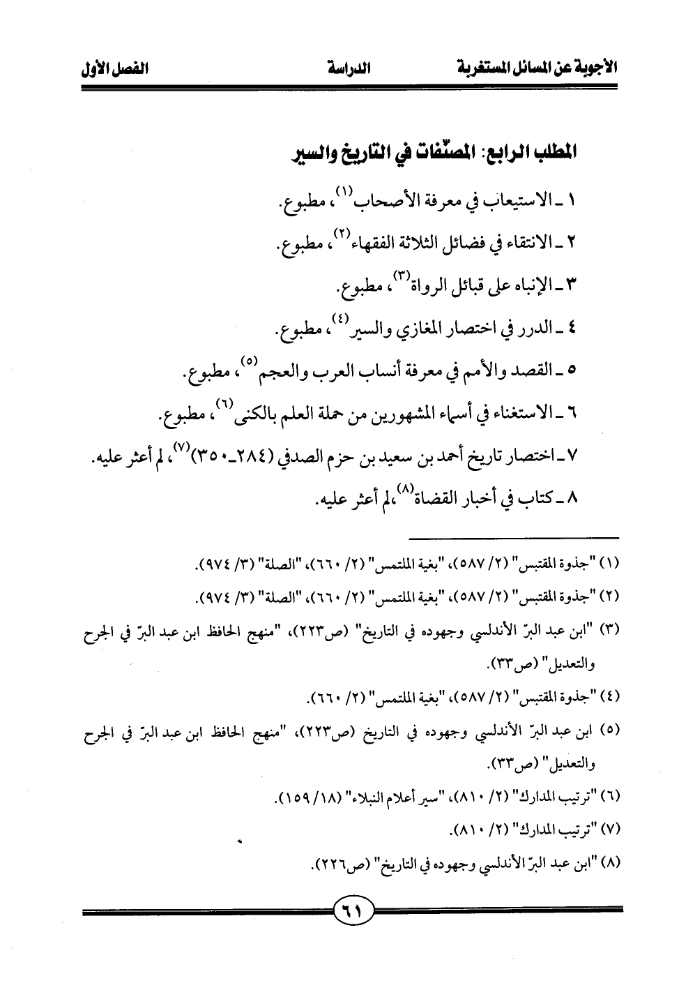 (¬8) "ابن عبد البرّ الأندلسي وجهوده في التاريخ" (226).