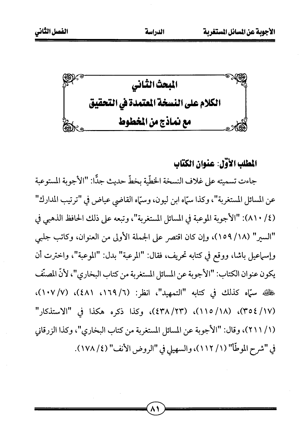 المبحث الثاني الكلام على النسخة المعتمدة في التحقيق مع نماذج من المخطوط