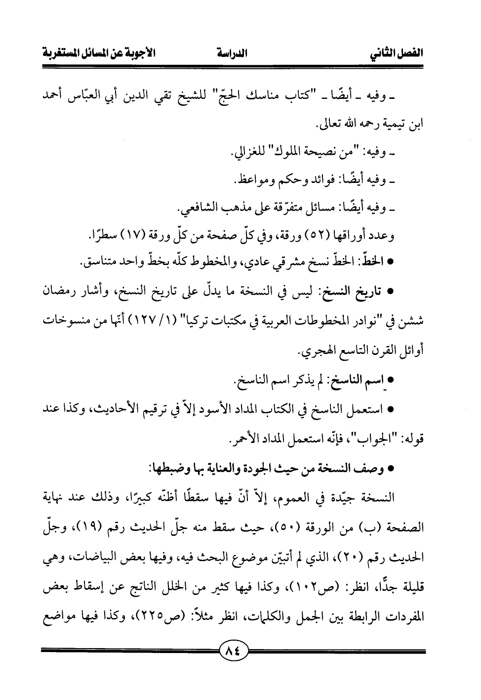 • وصف النسخة من حيث الجودة والعناية بها وضبطها: