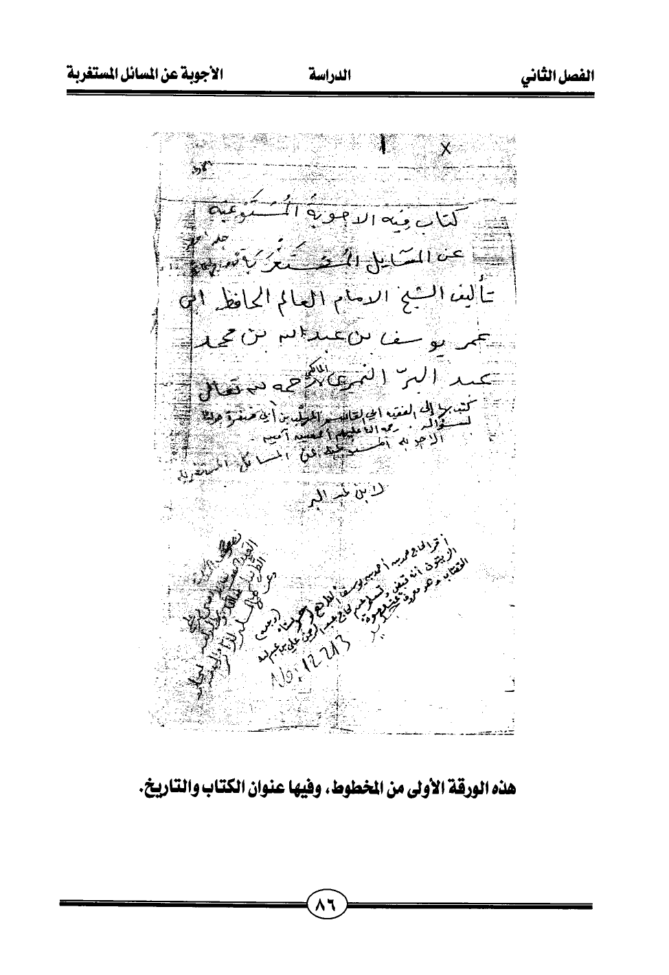 هذه الورقة الأولى من المخطوط، وفيها عنوان الكتاب والتاريخ.