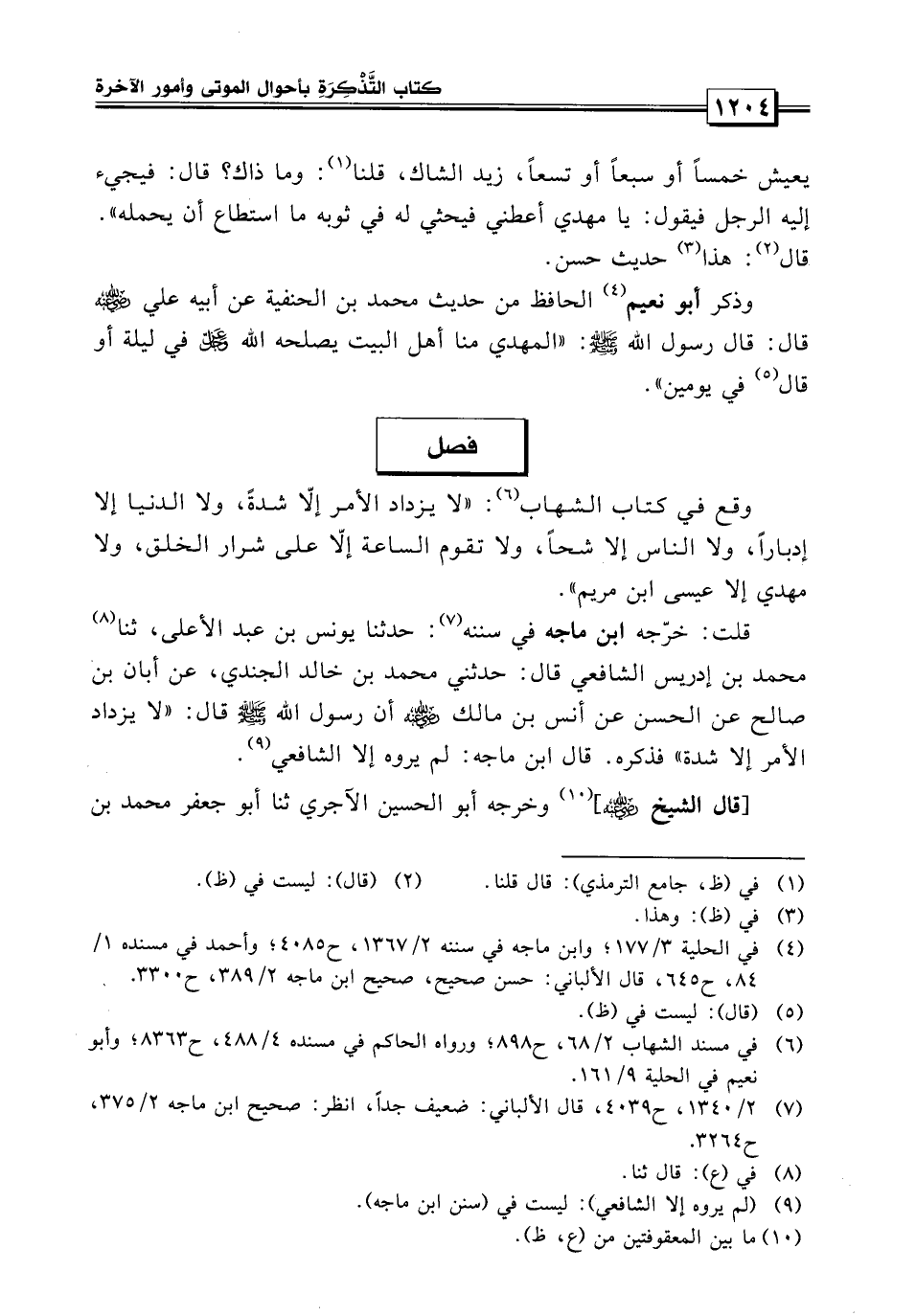 يعيش خمساً أو سبعاً أو تسعاً ـ زيد للشك قلنا وما ذاك؟ قال: يجيء إليه الرجل فيقول: يا مهدي أعطني فيحثي له في ثوبه ما استطاع أن يحمله» قال: هذا حديث حسن.