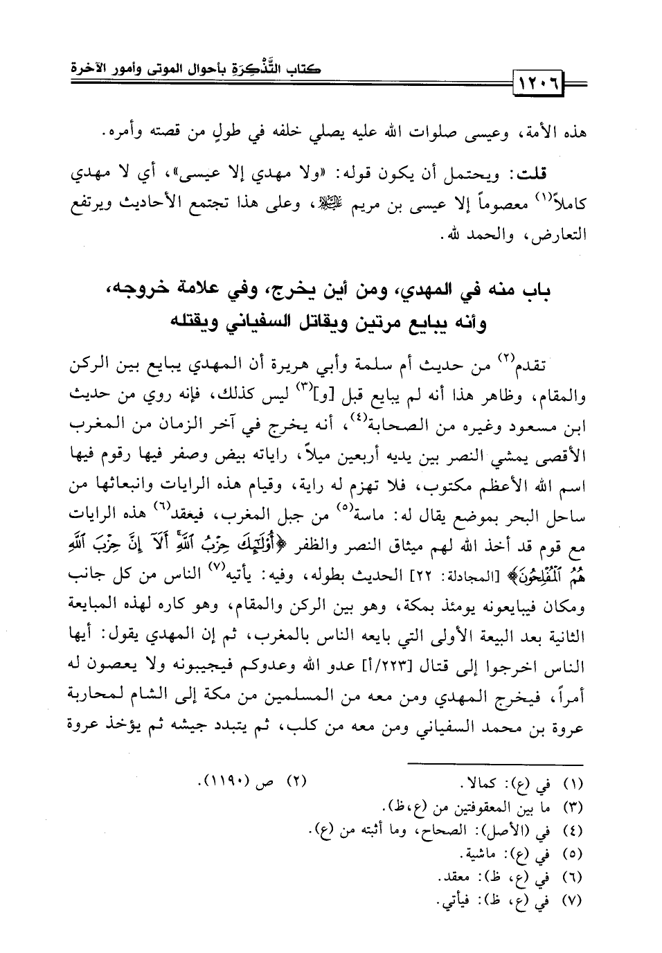 باب منه في المهدي ومن أين يخرج وفي علامة خروجه وأنه يبايع مرتين ويقاتل السفياني ويقتله