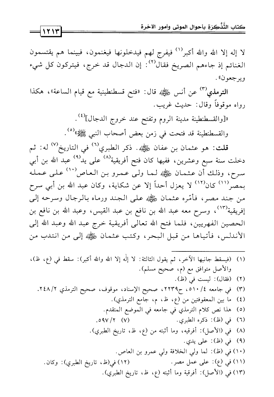 الترمذي عن أنس قال: فتح القسطنطينية مع قيام الساعة هكذا رواه موقوفاً وقال حديث غريب.