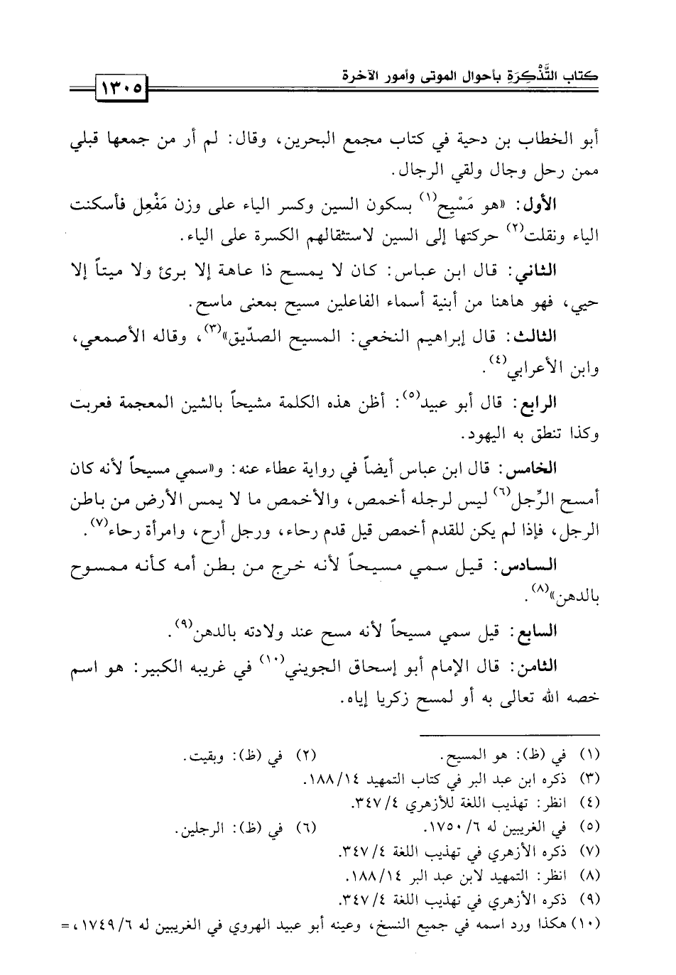 واختلف في لفظة المسيح على ثلاثة وعشرين قولاً ذكرها الحافظ أبو الخطاب بن دحية في كتابه مجمع البحرين وقال: لم أر من جمعها قبلي ممن رحل وجال ولقى الرجال.