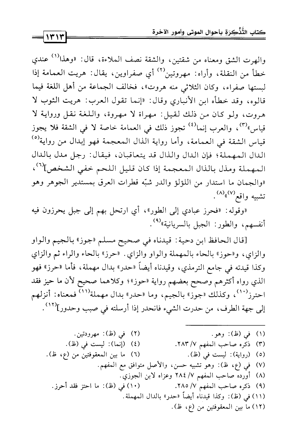 قال الحافظ بن دحية: قيدناه في صحيح مسلم جوز بالجيم والواو والزاي كذا قيدناه في جامع الترمذي، وقيدناه أيضاً حدر بدال مهملة، فأما حرز فهو الذي رواه أكثرهم وصحح بعضهم رواية حدر وكلاهما صحيح، لأن ما خير فقد أحرز وكذلك جوز بالجيم.